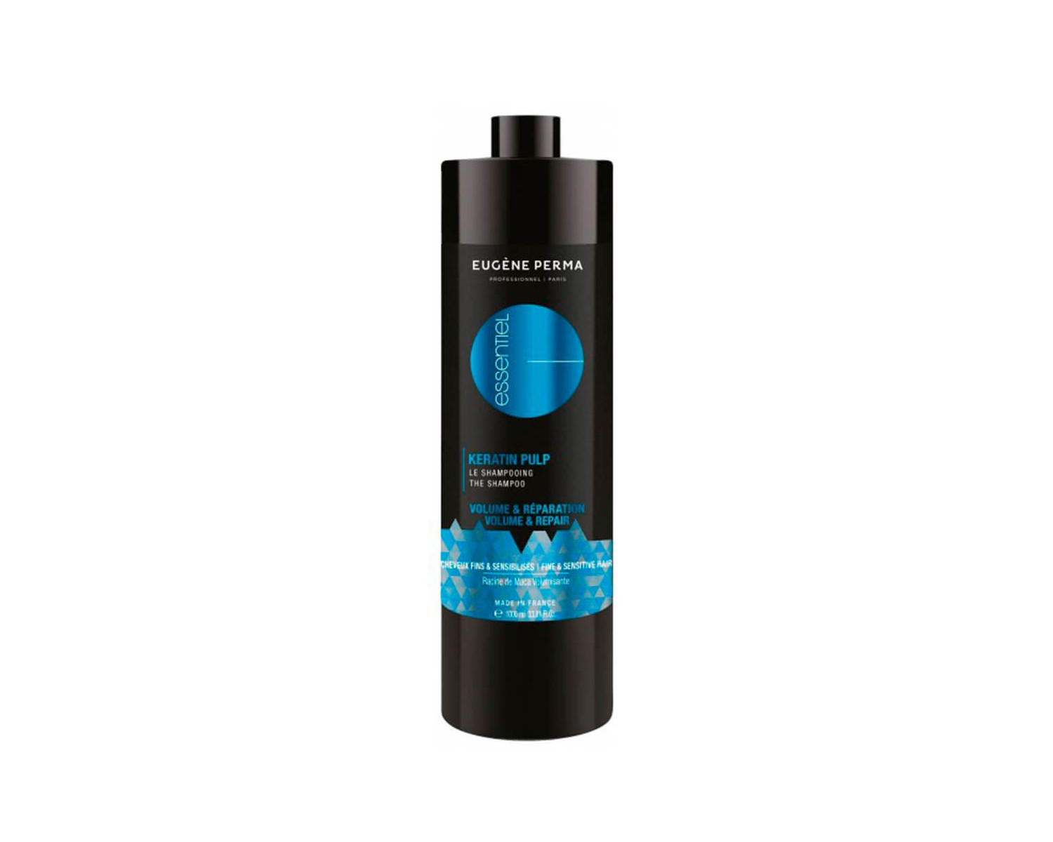 El champú Keratin Pulp Esentiel está diseñado para aportar volumen y reparar el cabello fino y dañado.