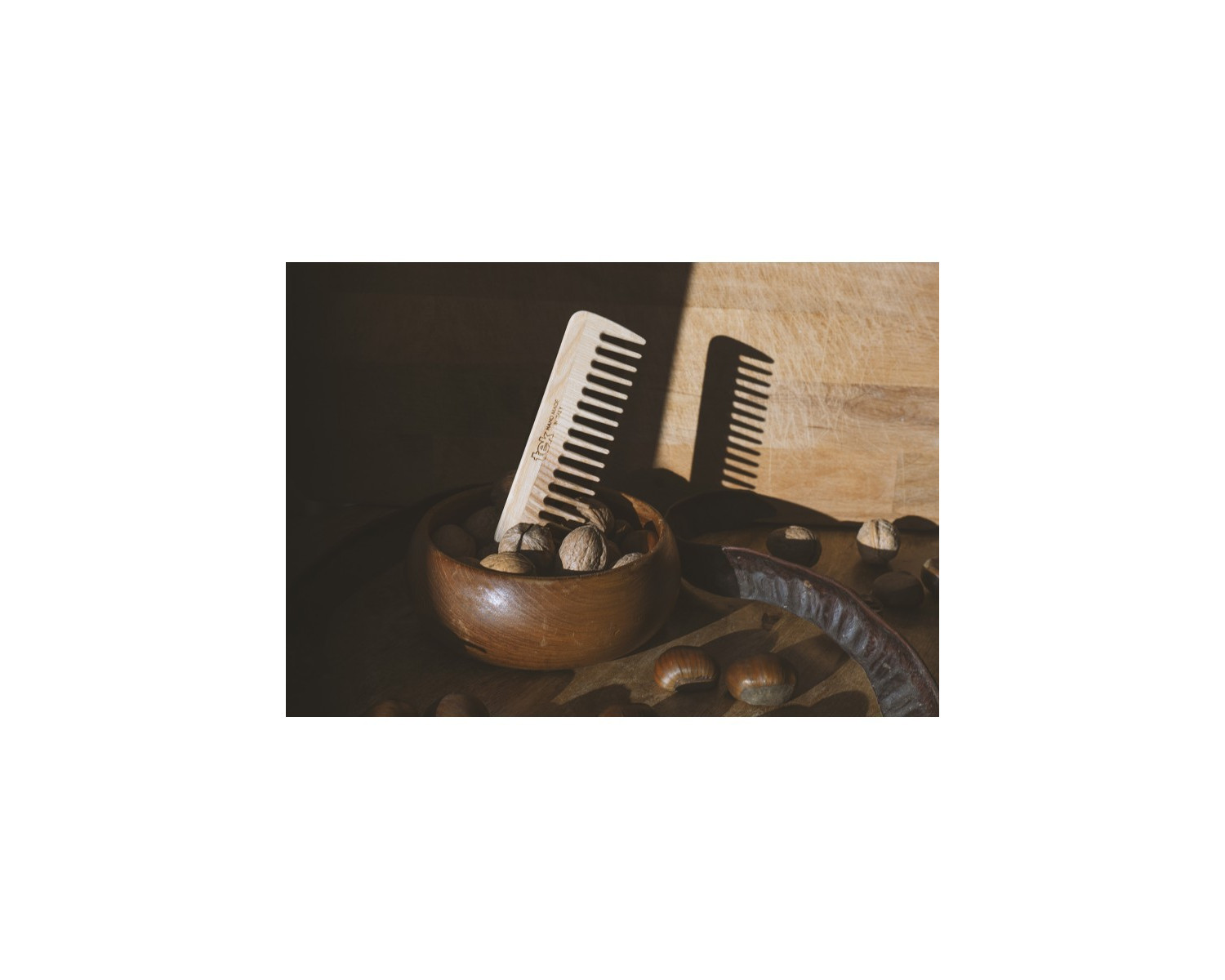 Este peine combina la elegancia de la madera natural con la funcionalidad necesaria para desenredar el cabello de manera efectiva. Su diseño de dientes ralos permite trabajar en cabello seco o mojado, asegurando que los nudos se eliminen sin dañar la estructura del cabello.
