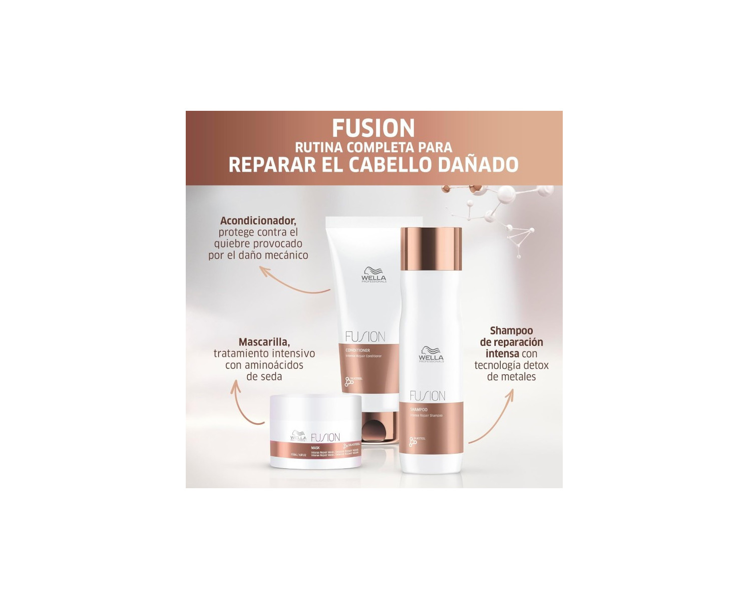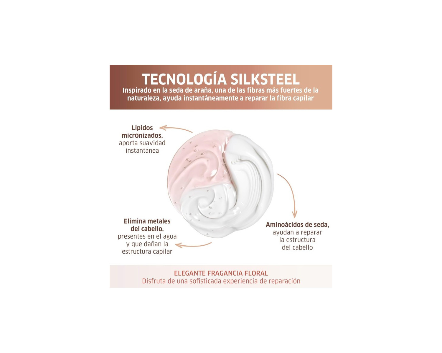 Enriquecido con la Tecnología Fusion Silksteel, repara las fibras capilares a nivel macro y micro, restaurando su fuerza y estructura. Contiene: